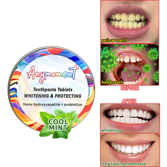 Anymoment Toothpaste Tablets With 7.5% Nano-Hydroxyapatite,remineralizes enamel ,whiten teeth, freshen breath,gift a collapsible cup,convenient and easy to carry for travel use
