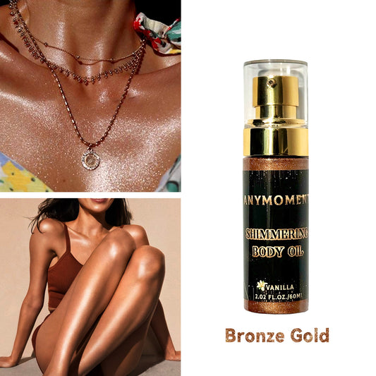 ANYMOMENT's Illuminate Me Shimmering Body Oil offers 2.02 oz of moisturizing benefits. It combines Apricot, Jojoba, and Avocado Oils with Vitamin E for quick absorption while nourishing and hydrating your skin. This product is suitable for all skin types